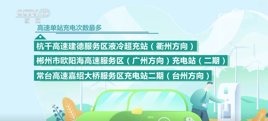 高速單站充電次數(shù)最多的是杭千高速建德服務(wù)區(qū)液冷超充站(衢州方向)、郴州市歐陽海高速服務(wù)區(qū)(廣州方向)充電站(二期)、常臺高速嘉紹大橋服務(wù)區(qū)充電站二期(臺州方向)。