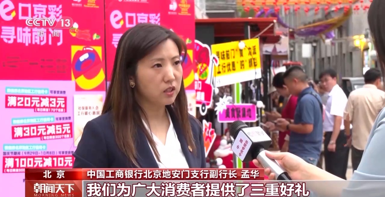 中國(guó)工商銀行北京地安門(mén)支行副行長(zhǎng) 孟華:我們?yōu)閺V大消費(fèi)者提供了三重好禮,除了傳統(tǒng)的消費(fèi)滿(mǎn)減活動(dòng)以外,我們還疊加了數(shù)字人民幣的優(yōu)惠支付,同時(shí)還設(shè)計(jì)了數(shù)字人民幣的打卡活動(dòng)。