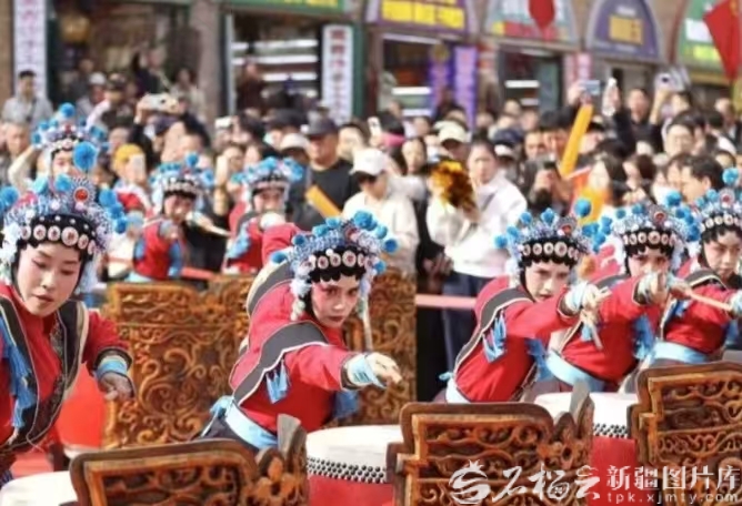 10月1日12時(shí),新疆國際大巴扎步行街化身為一片沸騰的海洋,來自陜西神木的非物質(zhì)文化遺產(chǎn)代表性項(xiàng)目——“忠勇楊家鼓”在此激情上演,為八方來客獻(xiàn)上一場氣勢磅礴的傳統(tǒng)民俗盛宴。