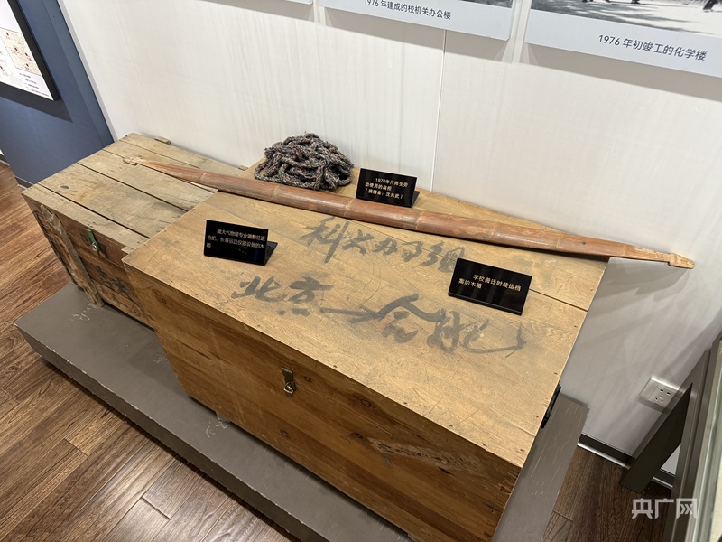 展柜中兩塊陳舊的紅色磚塊,銘刻著“史上最牛燒磚工”的故事?!爱?dāng)時,為了能盡快恢復(fù)科研和教學(xué)工作,中國科大師生親手燒制了建造化學(xué)樓的紅磚,其中很多老師、學(xué)生如今已經(jīng)成長為教授甚至院士,所以我們也經(jīng)常戲稱這群燒磚工為‘史上最牛燒磚工’。”王茂華介紹。