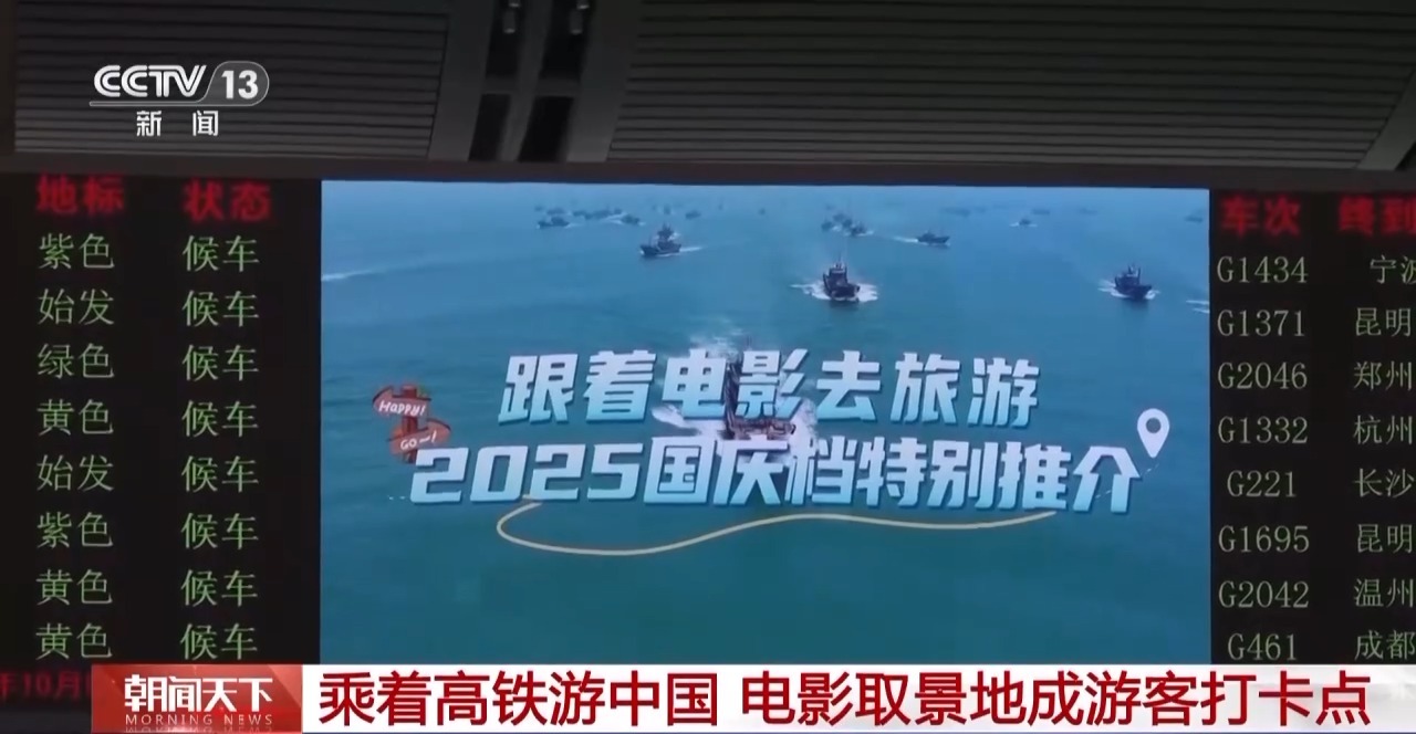據(jù)了解,為持續(xù)推動(dòng)“電影+”業(yè)態(tài)創(chuàng)新,國慶期間,在全國3000多個(gè)鐵路客運(yùn)車站、4200多組動(dòng)車組列車的車廂電視上,集中播放《跟著電影去旅游》等影旅主題推介視頻,不僅展示熱門電影取景地,還聯(lián)動(dòng)多條鐵路旅游專線提供出行指引,邀請(qǐng)旅客體驗(yàn)“鐵路+電影”的出行新方式。