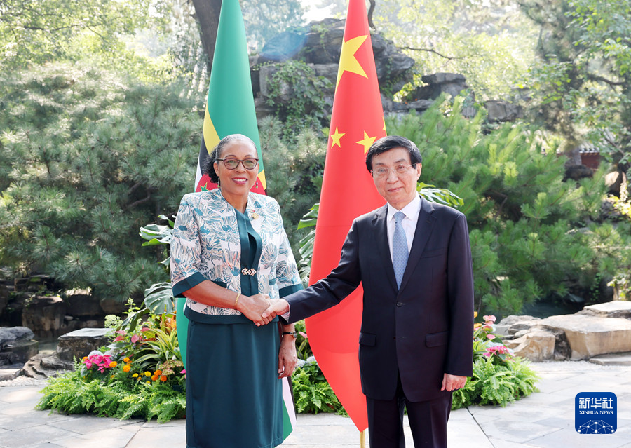 全國政協(xié)主席王滬寧14日在京會見來華出席全球婦女峰會的多米尼克總統(tǒng)伯頓。
