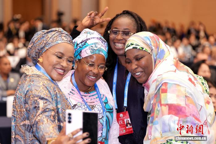 10月13日,全球婦女峰會全體會議在北京舉行。圖為與會代表在會前自拍留念。張祥毅 攝