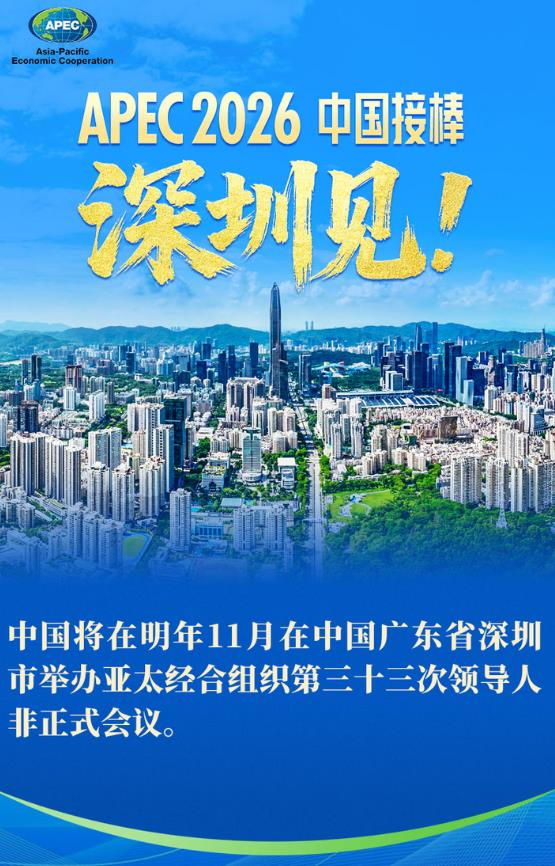 中國將在明年11月在中國廣東省深圳市舉辦亞太經(jīng)合組織第三十三次領(lǐng)導(dǎo)人非正式會議。