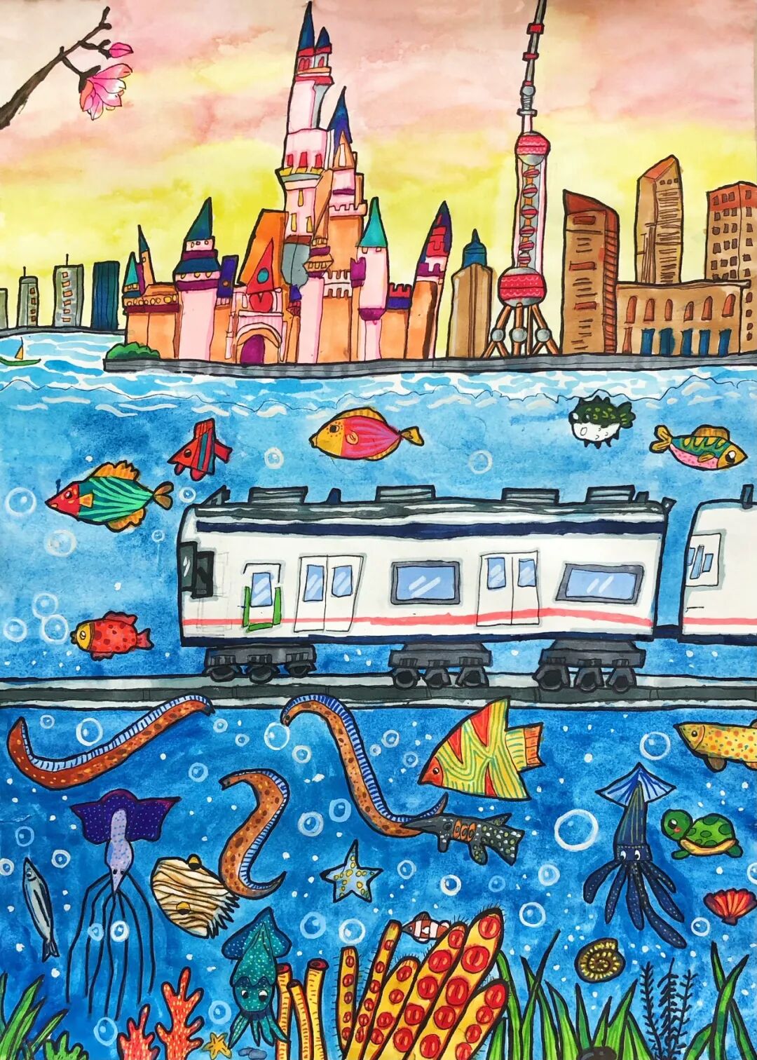 不遠(yuǎn)處徐鹽高鐵上,銀白色的高鐵像一道流星劃過水鄉(xiāng)。我的鉛筆在本子上沙沙作響,把窗外的景色畫下來:成片的藕田里,粉白的荷花搖曳生姿;戴著斗笠的農(nóng)民在稻田里忙碌,身后的水渠泛著粼粼波光。列車員阿姨推著小推車走來,“瓜子飲料礦泉水”的吆喝聲,和車輪與鋼軌的碰撞聲交織在一起,成為獨(dú)屬于旅途的音樂。