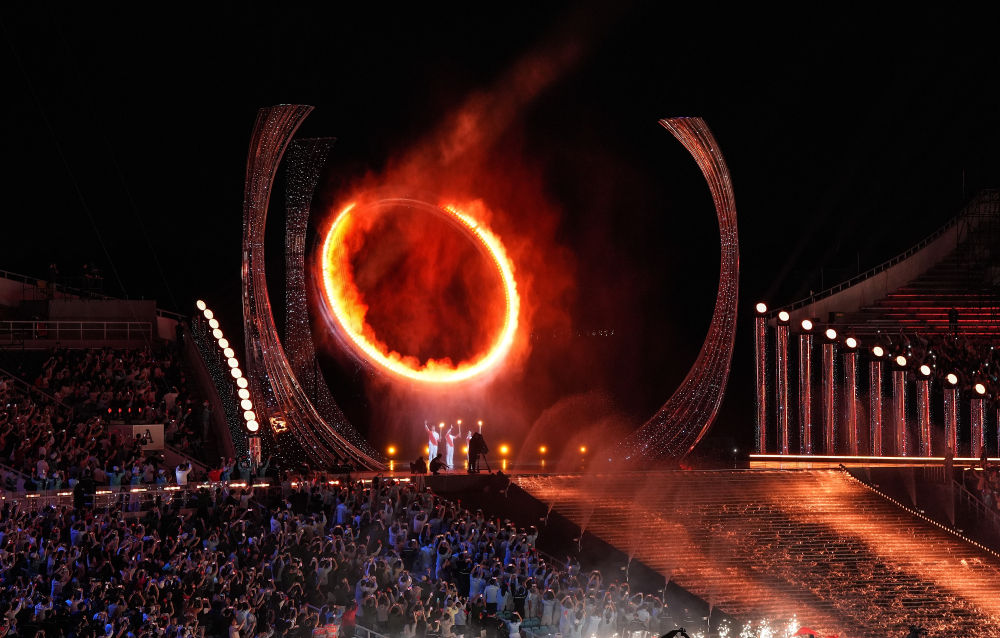 郎昆介紹,開幕式在空間敘事、藝術(shù)表達(dá)等方面都體現(xiàn)了三地文化交融。主舞臺(tái)直觀呈現(xiàn)“同心圓”造型,環(huán)形舞臺(tái)周邊是廣闊的水面,運(yùn)用前沿的“虛實(shí)結(jié)合”技術(shù),讓珠江、維多利亞港、伶仃洋的水波在場(chǎng)地中交匯奔流。這不僅是地理水系的相連,更是三地同源共流的文化血脈與手足親情的象征。