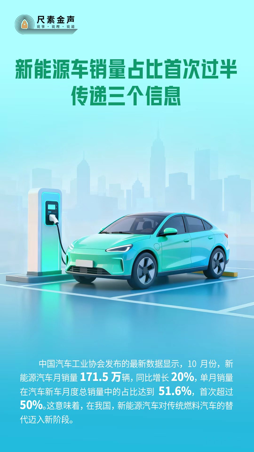新能源車銷量占比首次過半,傳遞三個(gè)信息。