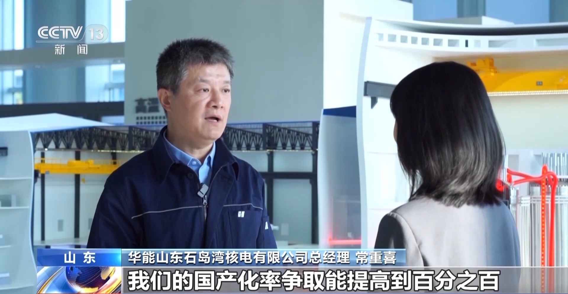 華能山東石島灣核電有限公司總經(jīng)理 常重喜:在“十五五”期間,國產(chǎn)化率爭取能提高到百分之百,同時(shí)提升整體系統(tǒng)設(shè)備的可靠性。在保證機(jī)組安全穩(wěn)定運(yùn)行的同時(shí),我們還會再做進(jìn)一步的研究,讓大國重器發(fā)揮更大的效能和作用。