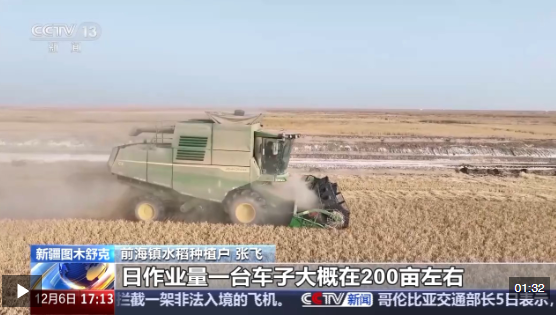 新疆圖木舒克市位于塔克拉瑪干沙漠邊緣,這段時(shí)間,圖木舒克市前海鎮(zhèn)的4000畝晚種晚熟的沙漠水稻迎來(lái)豐收。