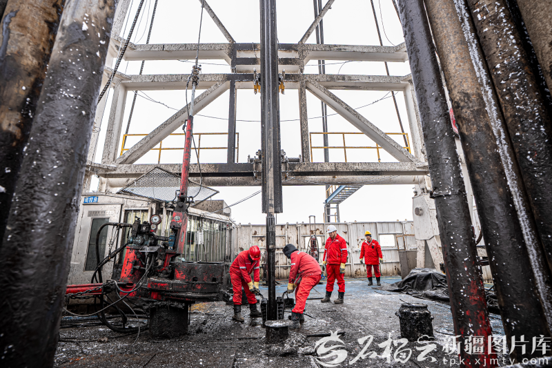 12月8日,中國石油新疆油田吉慶作業(yè)區(qū)頁巖油JHW74-33井現(xiàn)場鉆機(jī)轟鳴。徐志遠(yuǎn) 攝