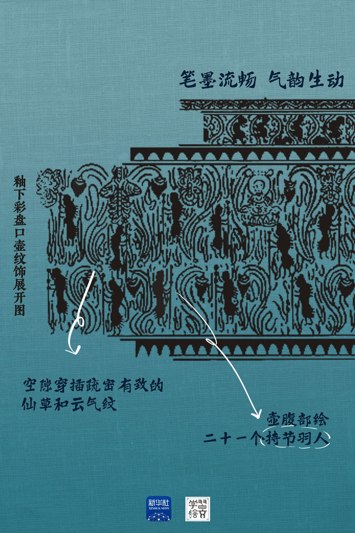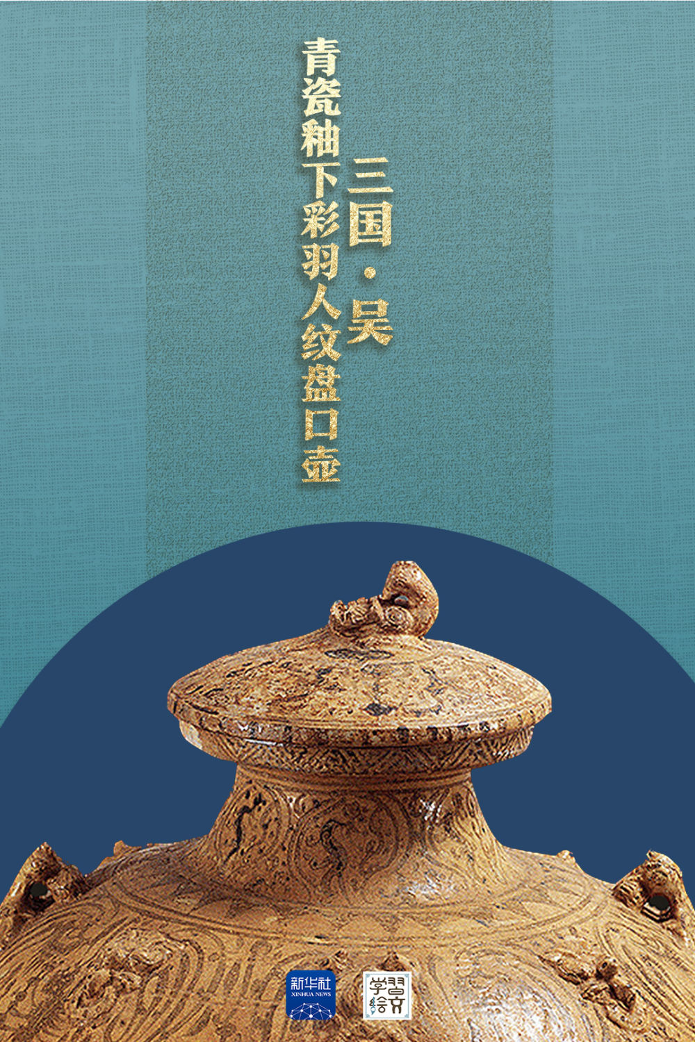 “這件藏于六朝博物館的青瓷釉下彩羽人紋盤口壺于1983年出土,精湛的釉下彩繪工藝,改變了人們對釉下彩工藝始于唐代的認識,把我國釉下彩繪工藝出現(xiàn)的時間提前了近五百年?!彼窝嗾f。
