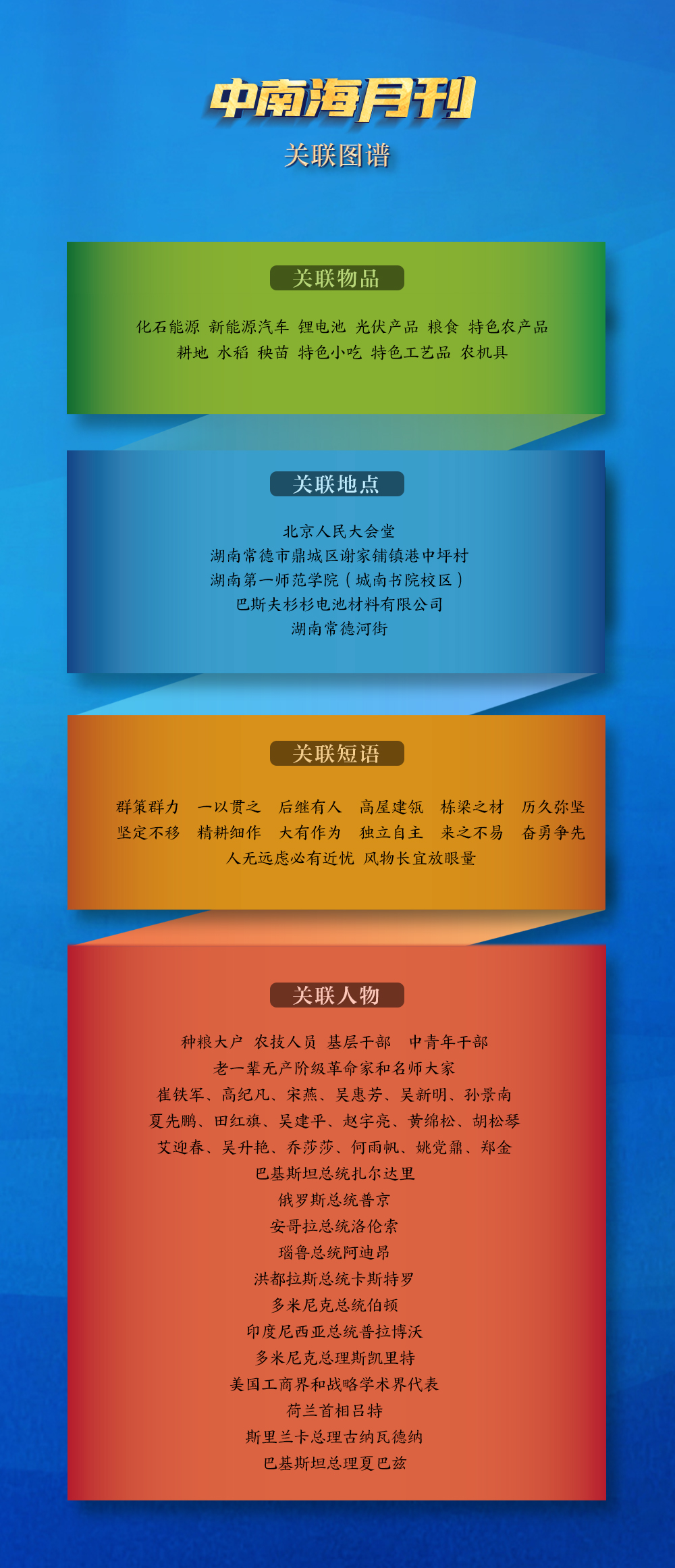 觀察分析央視網“I學習”數據庫生成的3月關聯圖譜,“耕地”“秧苗”“農機具”等飽含著總書記對農民農事的關心囑托;“后繼有人”“棟梁之材”承載著他對青年一代的殷切期許;“風物長宜放眼量”“人無遠慮必有近憂”則蘊含著他對歷史與現實的辯證思考。
