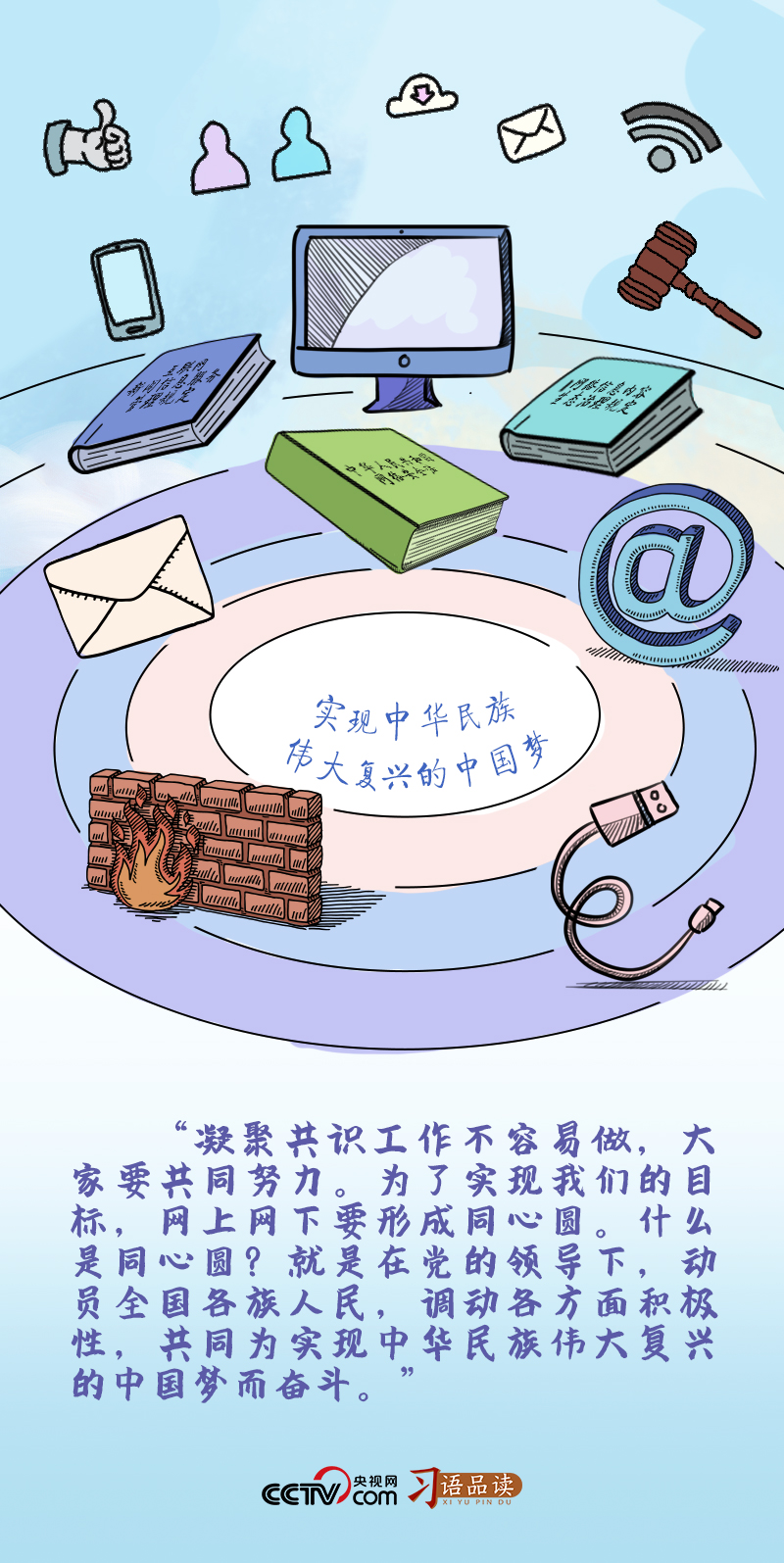 “網(wǎng)上網(wǎng)下要形成同心圓”“形成最大公約數(shù),畫(huà)出最大的同心圓”……習(xí)近平總書(shū)記曾多次用“同心圓”這一比喻指明推進(jìn)網(wǎng)絡(luò)強(qiáng)國(guó)建設(shè)、促進(jìn)網(wǎng)信事業(yè)發(fā)展的方向。