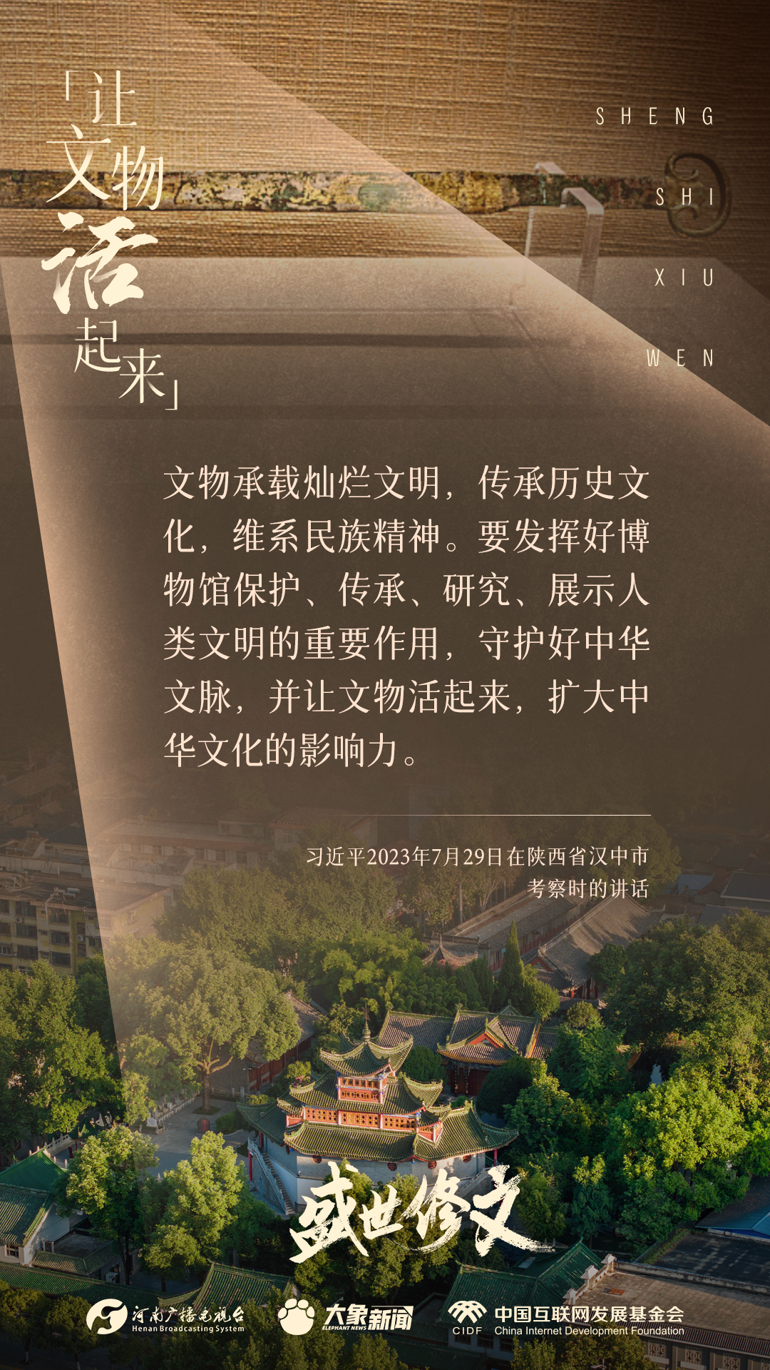 今天推出:習(xí)近平文化思想金句之《盛世修文|讓文物活起來》