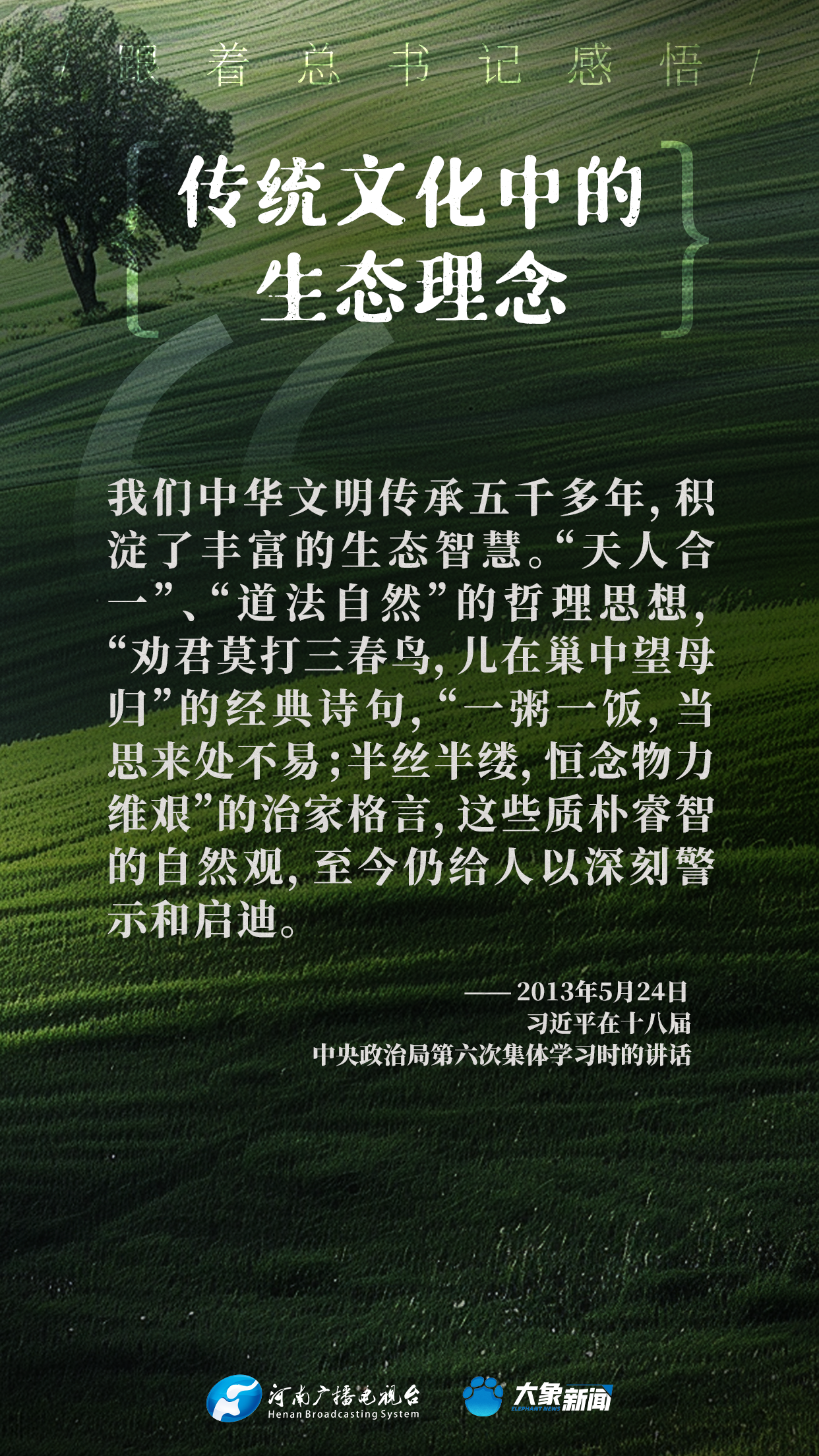 大象新聞邀您一起,跟著總書記,感悟中華優(yōu)秀傳統(tǒng)文化中蘊(yùn)含的生態(tài)理念。