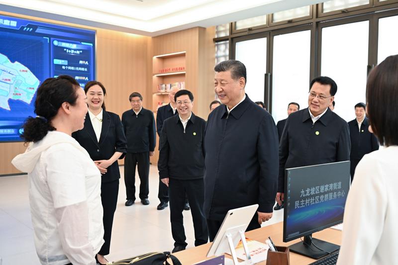 2024年4月22日,習(xí)近平總書記來到重慶九龍坡區(qū)謝家灣街道民主村社區(qū),察看小區(qū)改造和便民服務(wù)情況,聽取提升基層治理效能、為基層減負情況介紹。