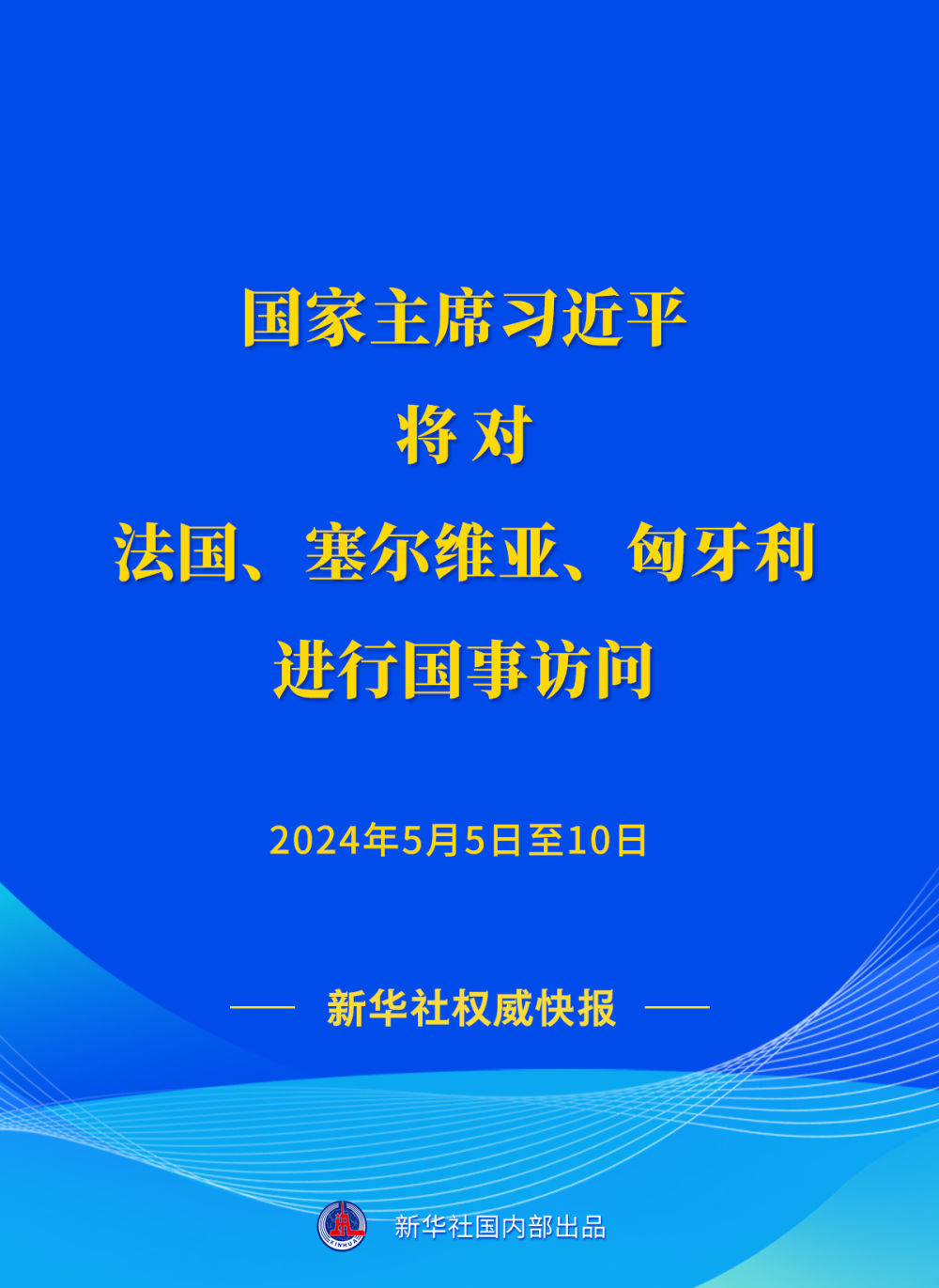 外交部發(fā)言人華春瑩4月29日宣布:應(yīng)法蘭西共和國總統(tǒng)馬克龍、塞爾維亞共和國總統(tǒng)武契奇、匈牙利總統(tǒng)舒尤克和總理歐爾班邀請(qǐng),國家主席習(xí)近平將于5月5日至10日對(duì)上述三國進(jìn)行國事訪問。