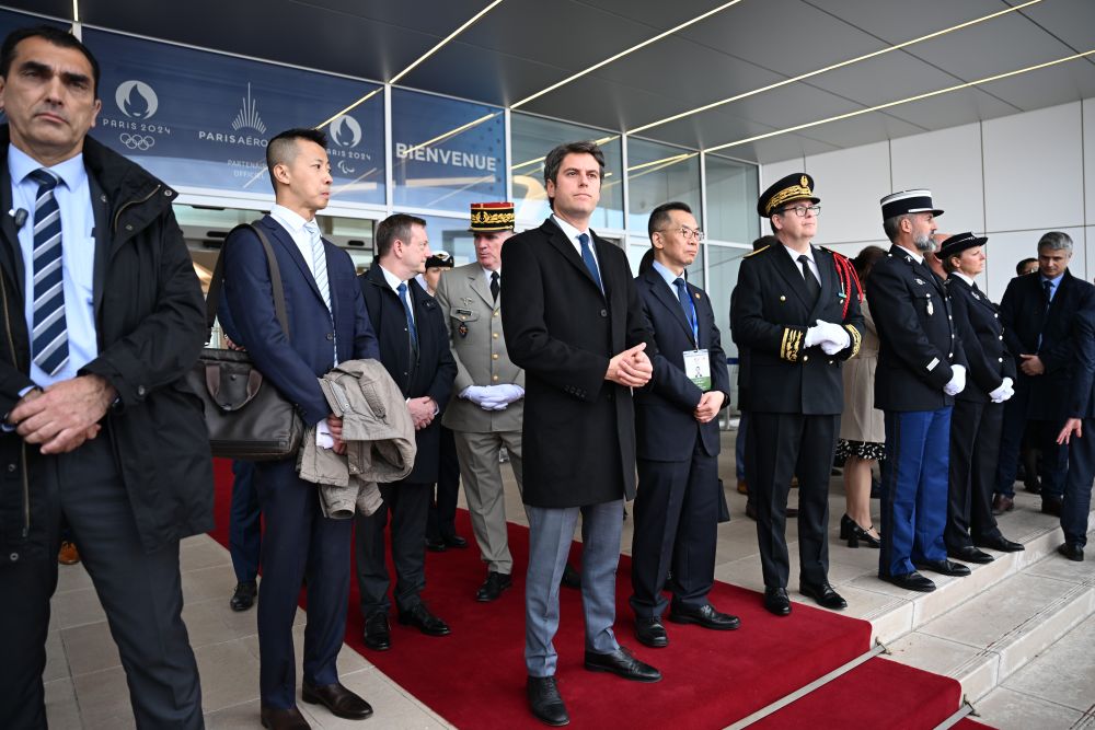 習(xí)近平乘坐專機(jī)抵達(dá)巴黎奧利機(jī)場時,法國總理阿塔爾等法國政府高級代表熱情迎接。