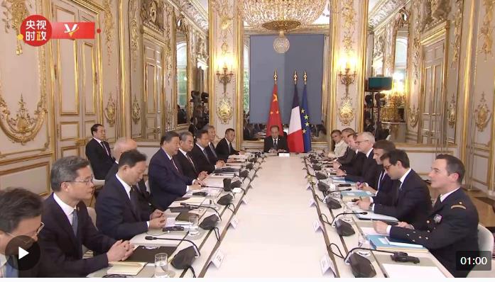 習近平指出,很高興應(yīng)邀在中法建交60周年之際,對法國進行第三次國事訪問。雙方應(yīng)該堅守獨立自主、相互理解、高瞻遠矚、互利共贏的建交初心,并為其注入新的時代內(nèi)涵。在當前世界百年變局、亂局下,中法要堅持獨立自主,共同防止“新冷戰(zhàn)”或陣營對抗;要堅持相互理解,共同促進多彩世界的和諧共處;要堅持高瞻遠矚,共同推動平等有序的世界多極化;要堅持互利共贏,共同反對“脫鉤斷鏈”、“筑墻設(shè)壘”。
