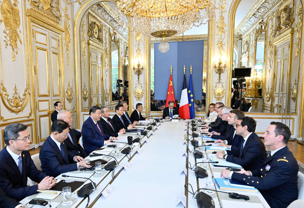 習(xí)近平指出,很高興在中法建交60周年之際對(duì)法國(guó)進(jìn)行第三次國(guó)事訪(fǎng)問(wèn)。中法關(guān)系60年珍貴歷程,將使我們更好思考如何開(kāi)啟下一個(gè)60年。在當(dāng)前世界百年變局下,雙方應(yīng)該堅(jiān)守獨(dú)立自主、相互理解、高瞻遠(yuǎn)矚、互利共贏的建交初心,并為其注入新的時(shí)代內(nèi)涵,打造新時(shí)期互信穩(wěn)定、守正創(chuàng)新、擔(dān)當(dāng)作為的中法關(guān)系。雙方要堅(jiān)持獨(dú)立自主,共同防止“新冷戰(zhàn)”或陣營(yíng)對(duì)抗;要堅(jiān)持相互理解,共同促進(jìn)多彩世界的和諧共處;要堅(jiān)持高瞻遠(yuǎn)矚,共同推動(dòng)平等有序的世界多極化;要堅(jiān)持互利共贏,共同反對(duì)“脫鉤斷鏈”。