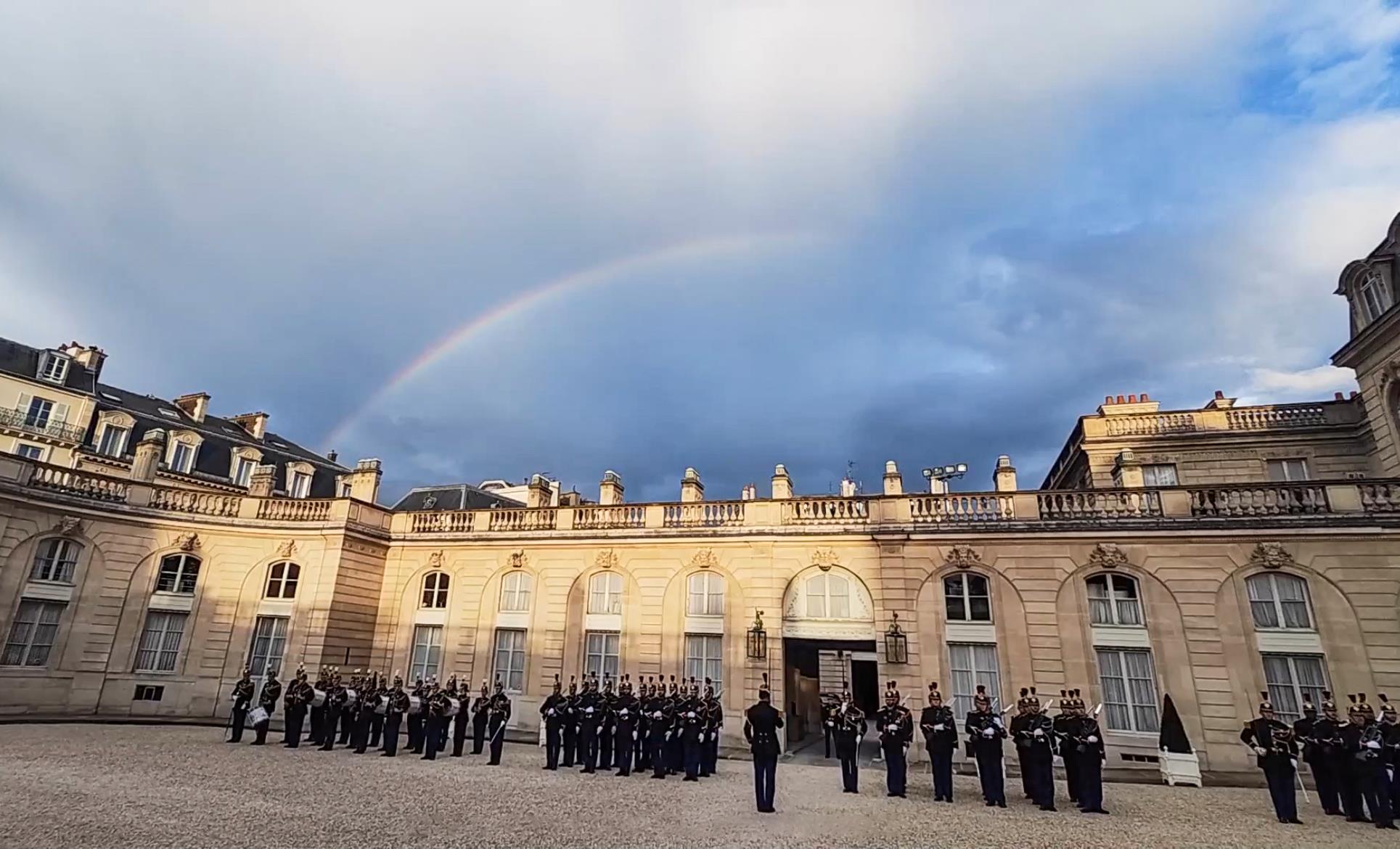 當地時間5月6日晚,習近平主席在巴黎出席馬克龍總統(tǒng)舉行的盛大歡迎宴會。宴會前,愛麗舍宮上空出現彩虹。彩虹連接著東西方。塞納河畔,正寫下中法兩國“雙向奔赴”的新故事。