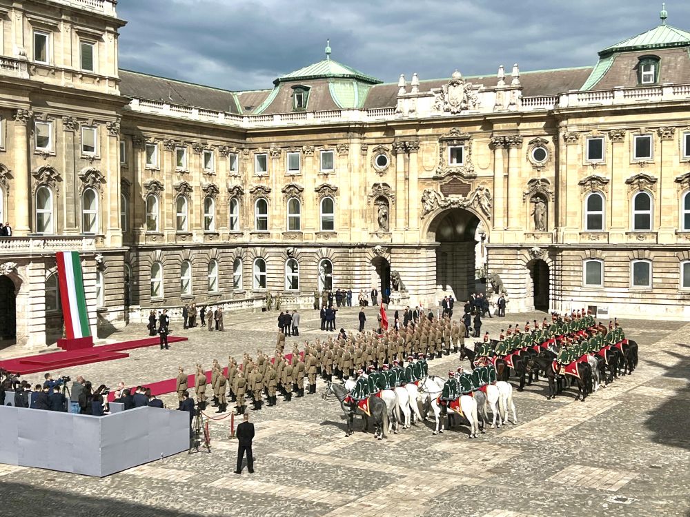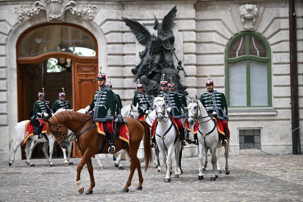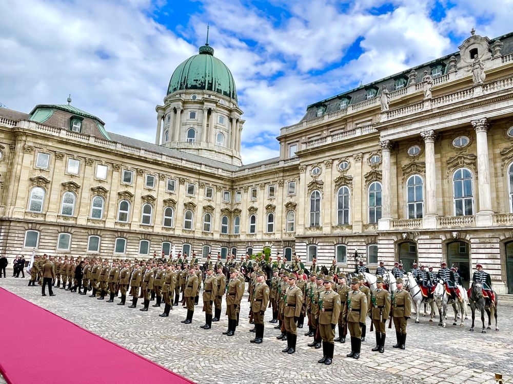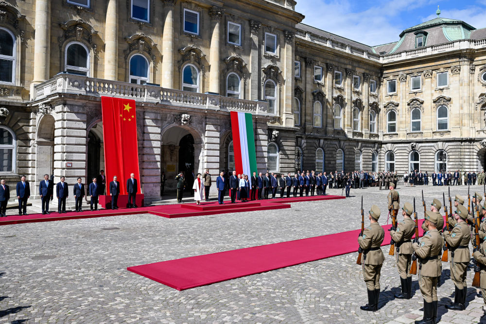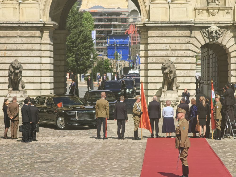 初夏時節(jié)的布達(dá)佩斯陽光明媚,古老宏偉的布達(dá)王宮莊嚴(yán)矗立,中匈兩國國旗相映成輝。習(xí)近平和夫人彭麗媛乘坐的國賓車隊在匈牙利禮賓馬隊護(hù)衛(wèi)下緩緩駛?cè)氩歼_(dá)王宮內(nèi)庭。舒尤克總統(tǒng)夫婦和歐爾班總理夫婦熱情迎接。