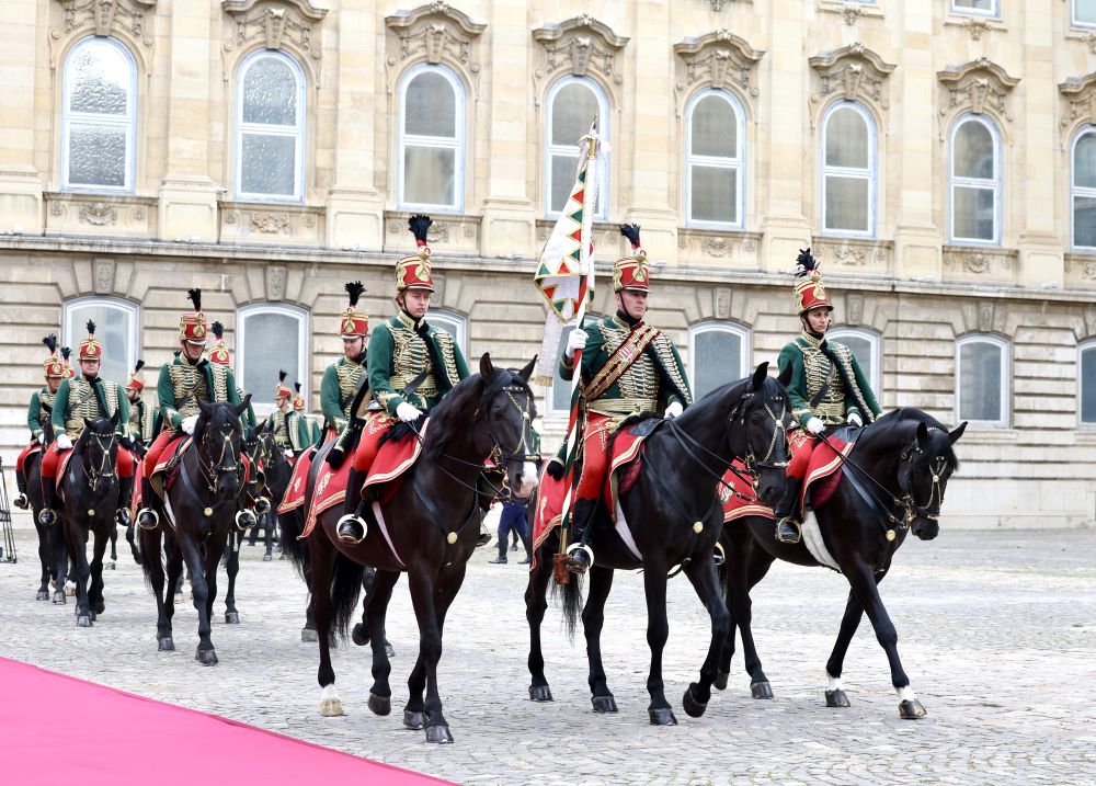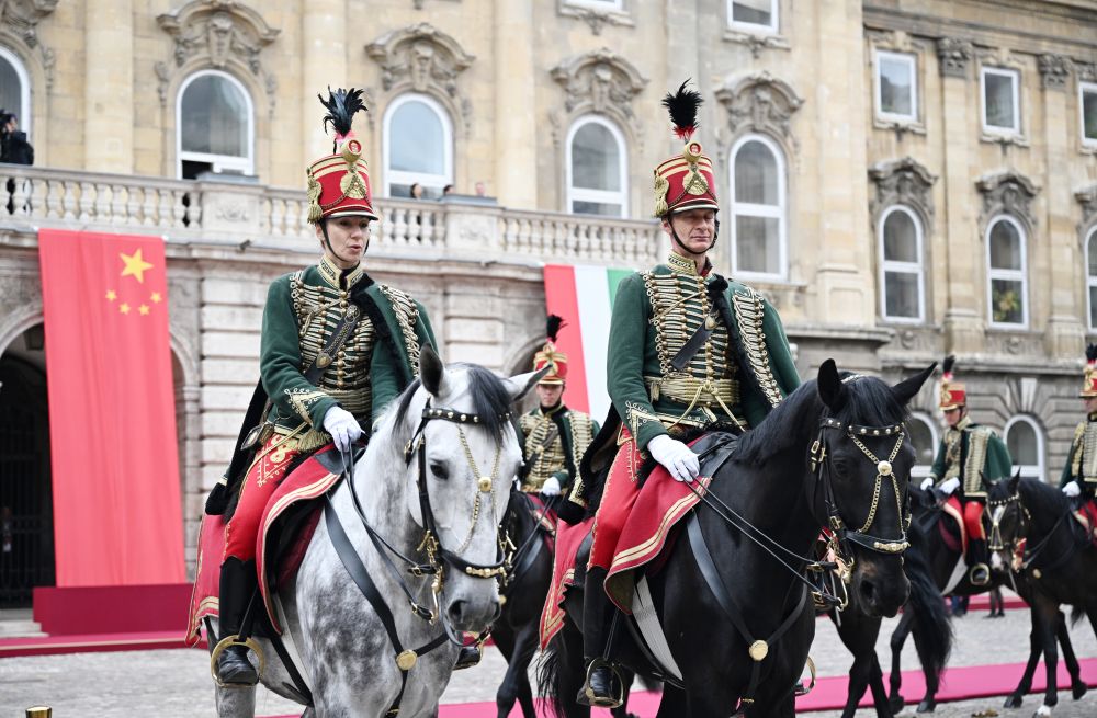 當(dāng)?shù)貢r間5月9日上午,國家主席習(xí)近平在布達(dá)佩斯出席匈牙利總統(tǒng)舒尤克和總理歐爾班共同舉行的隆重歡迎儀式。習(xí)近平在舒尤克陪同下檢閱國防軍儀仗隊和騎兵儀仗隊。