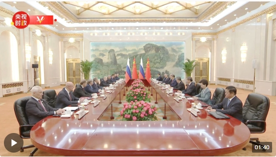 普京說(shuō):“尊敬的習(xí)近平主席,我親愛(ài)的老朋友,非常高興時(shí)隔半年再次來(lái)到友好、好客的中國(guó)并同您會(huì)面。俄中關(guān)系不是權(quán)宜之計(jì),不針對(duì)第三方,我們?cè)趪?guó)際事務(wù)中的合作,是當(dāng)今國(guó)際舞臺(tái)的主要穩(wěn)定因素之一?!?/p>