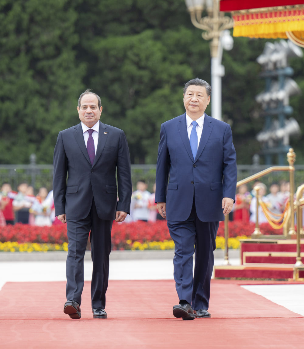 5月29日下午,國家主席習(xí)近平在北京人民大會堂同來華出席中國-阿拉伯國家合作論壇第十屆部長級會議開幕式并進行國事訪問的埃及總統(tǒng)塞西舉行會談。這是會談前,習(xí)近平在人民大會堂東門外廣場為塞西舉行歡迎儀式。新華社記者 翟健嵐 攝