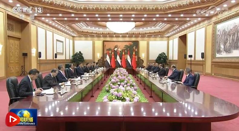 塞西表示,很高興來華進行國事訪問并出席中阿合作論壇第十屆部長級會議開幕式。當前世界正處于深刻復雜變化之中,中東地區(qū)深陷危機。埃方期待同中方進一步深化全面戰(zhàn)略伙伴關(guān)系,努力促進地區(qū)和平穩(wěn)定。埃方恪守一個中國原則,堅定支持中方在涉臺、涉港、涉藏、人權(quán)等核心利益問題上的立場,堅定支持中國實現(xiàn)國家完全統(tǒng)一。埃方歡迎更多中國企業(yè)赴埃投資合作,助力埃及制造業(yè)發(fā)展和工業(yè)化進程。希望以今年“埃中伙伴年”為契機,密切人文交流,加強兩國在信息通訊、人工智能、新能源、糧食安全、金融等方面合作。埃方贊賞習近平主席提出的系列全球倡議,愿同中方密切多邊協(xié)作,為人類和平進步作出積極貢獻。
