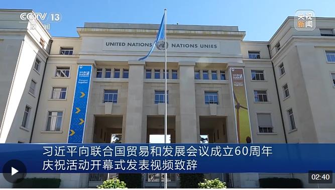6月12日,國家主席習近平向聯(lián)合國貿易和發(fā)展會議成立60周年慶祝活動開幕式發(fā)表視頻致辭。