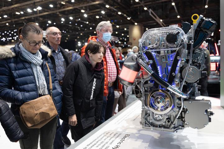 觀眾在瑞士舉行的2024年日內(nèi)瓦國際車展上參觀比亞迪新款發(fā)動機。