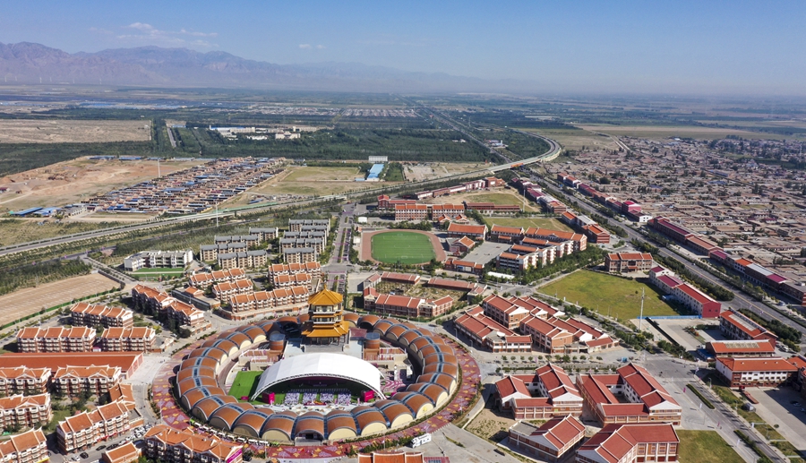這是2022年9月7日拍攝的寧夏銀川市閩寧鎮(zhèn)(無人機照片)。新華社記者 馮開華 攝
