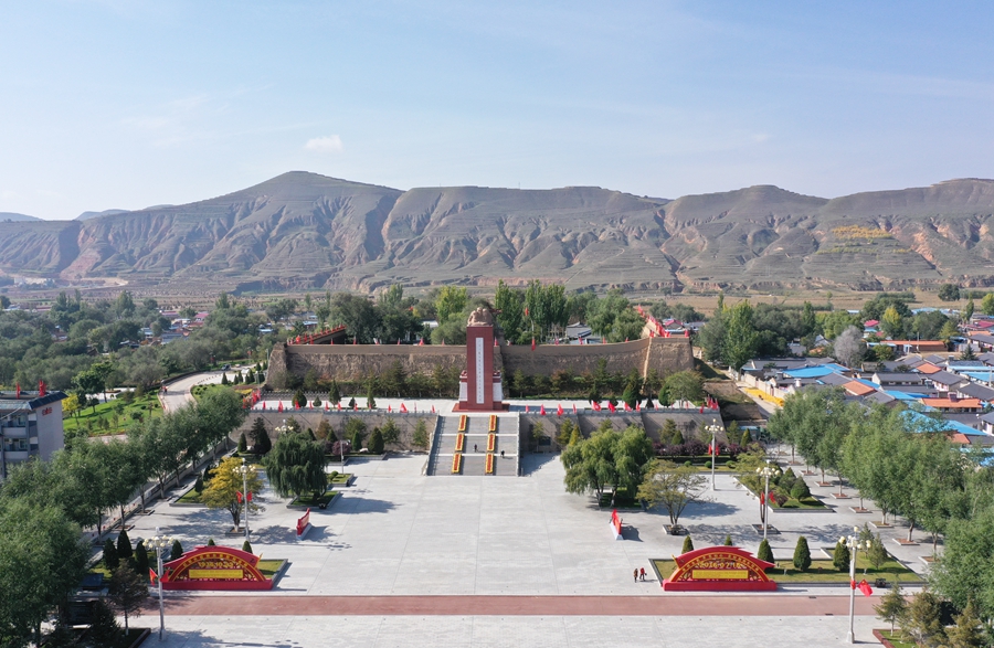 這是位于寧夏固原市西吉縣的將臺堡紅軍長征會師紀(jì)念園(2021年10月18日攝,無人機照片)。新華社記者 盧鷹 攝