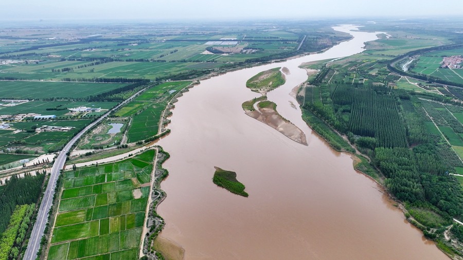 這是2024年6月13日拍攝的黃河寧夏段(無人機照片)。新華社記者 王鵬 攝
