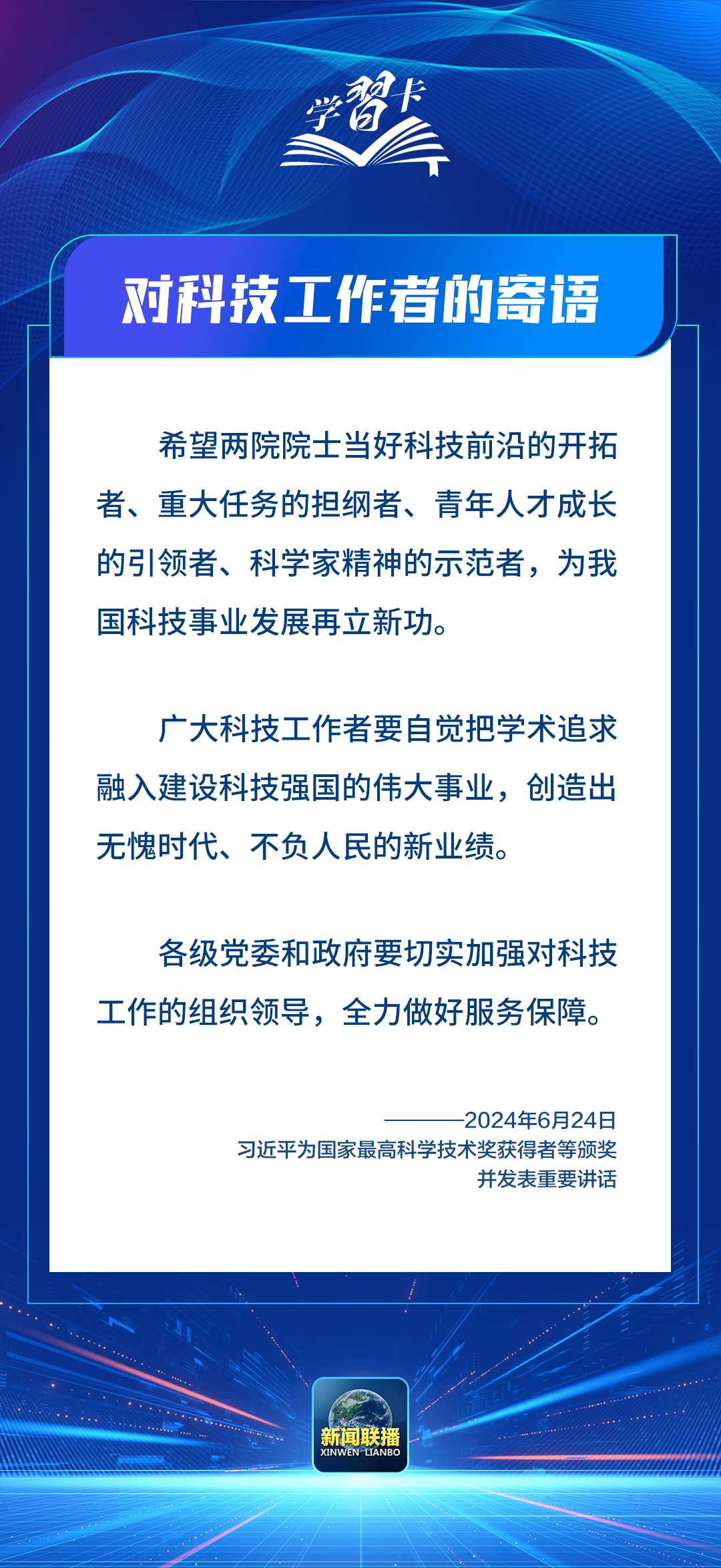 6月24日,中共中央總書記、國家主席、中央軍委主席習近平為國家最高科學技術(shù)獎獲得者等頒獎并發(fā)表重要講話。