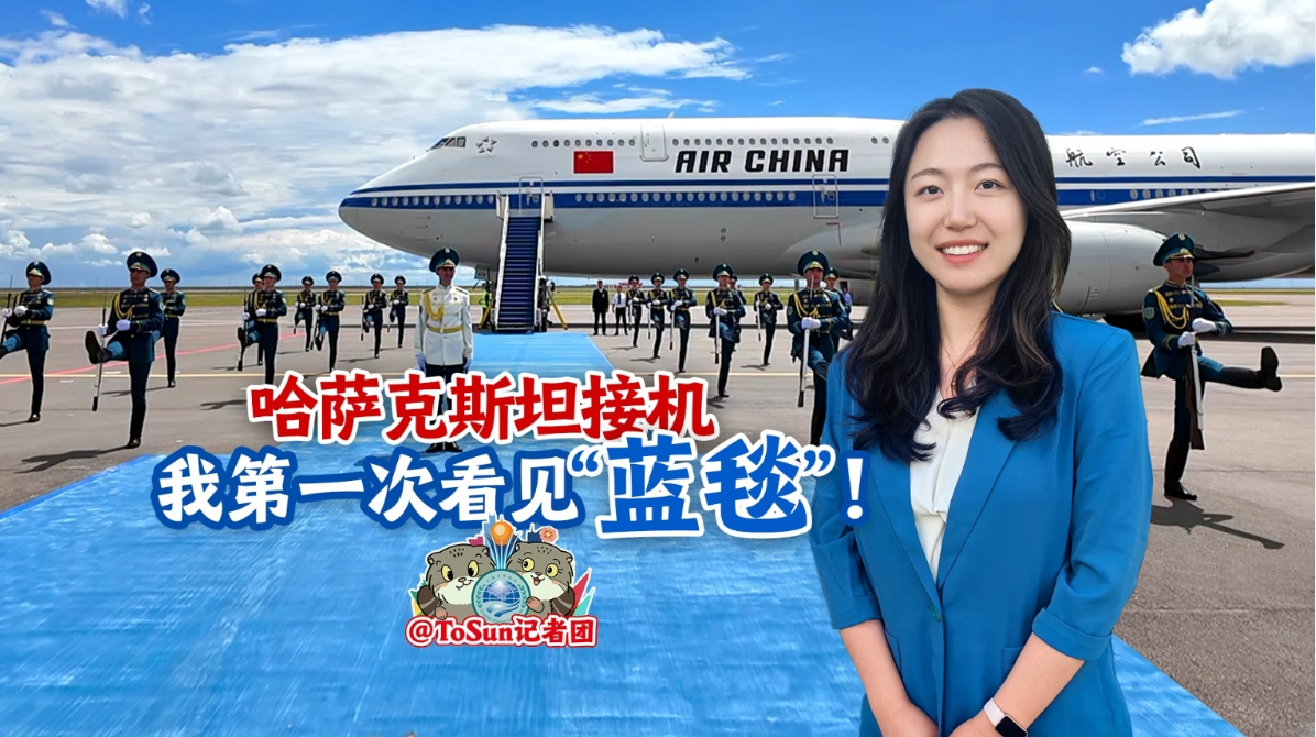 ToSun記者團在現(xiàn)場第一次見到了用天藍色地毯鋪就的“紅毯”。藍毯寓意是什么?一起來看現(xiàn)場。