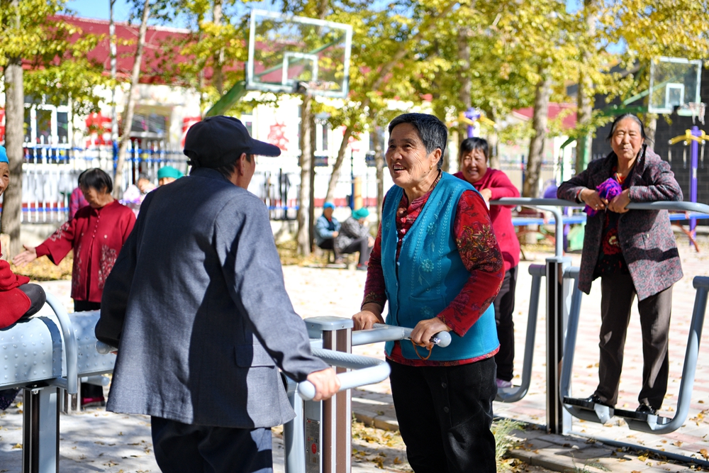 居住在河北省康??h土城子鎮(zhèn)互助幸福院的老人們在院子里休閑(2023年10月14日攝)。新華社記者 牟宇 攝