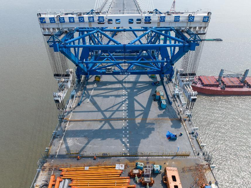 在江蘇,長達1208米的世界最大跨度斜拉橋——常泰長江大橋全橋貫通。建設(shè)單位在大橋建設(shè)過程中投用了QMD-2000型全球最大噸位橋面吊機,研發(fā)了抗拉強度高達2100兆帕的斜拉索,打造出國內(nèi)首條鋼桁梁全過程智能生產(chǎn)線……依托5G、大數(shù)據(jù)、物聯(lián)網(wǎng)等信息技術(shù),常泰長江大橋建設(shè)還實現(xiàn)了對施工全過程的“可知、可測、可控”。