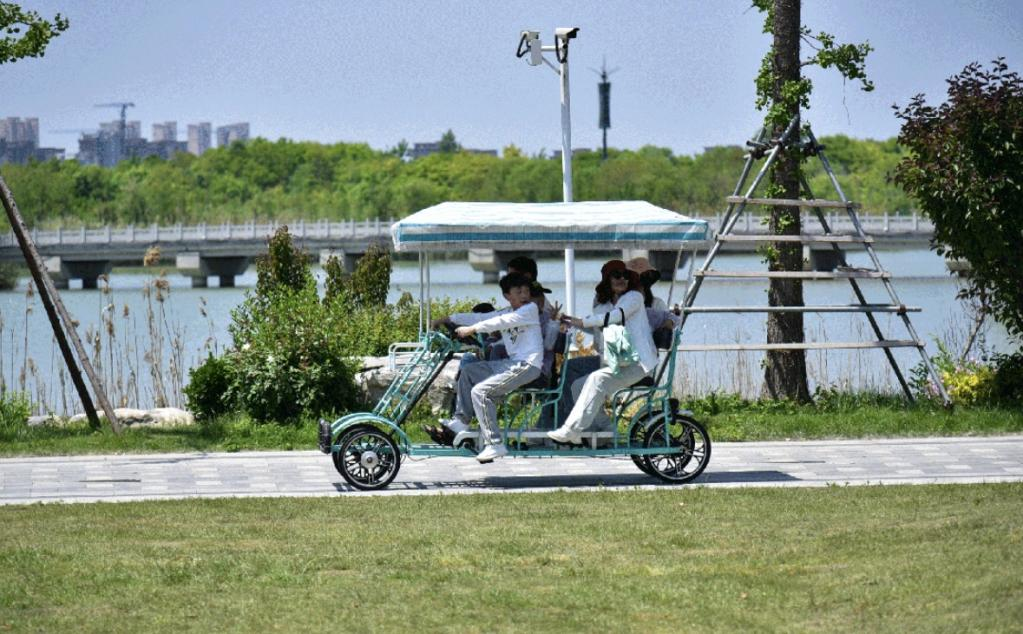 游客們在潘安湖國家濕地公園游玩(央廣網發(fā) 楊勇 攝)