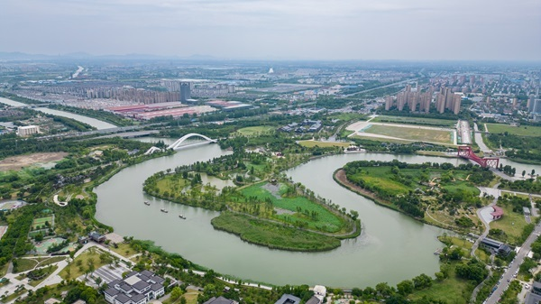 運河三灣生態(tài)文化公園鳥瞰圖(央廣網記者 鄭楚豫 攝)
