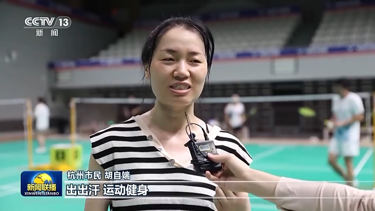杭州市民 胡自端:出出汗,運動健身,一個也可以解壓,第二個也可以強(qiáng)身健體,第三個還能交到很多志同道合的好朋友,我覺得非常好。全民健身也是越來越流行的一個趨勢。