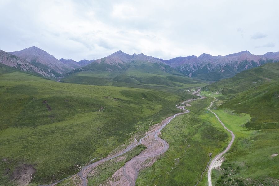 2024年7月10日在甘肅省張掖市肅南裕固族自治縣皇城鎮(zhèn)拍攝的祁連山景色(無(wú)人機(jī)照片)。新華社記者 郎兵兵 攝