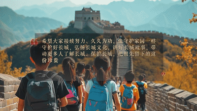 希望大家接續(xù)努力、久久為功,像守護家園一樣守護好長城,弘揚長城文化,講好長城故事,帶動更多人了解長城、保護長城,把祖先留下的這份珍貴財富世世代代傳下去,為建設社會主義文化強國、推進中國式現(xiàn)代化貢獻力量。
