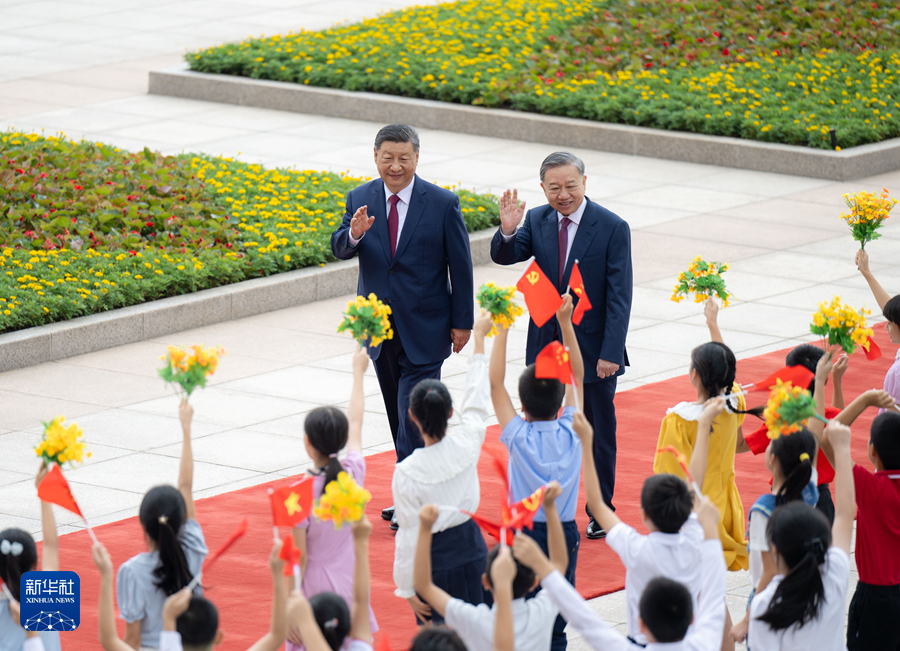 8月19日,中共中央總書記、國家主席習(xí)近平在北京人民大會堂同來華進(jìn)行國事訪問的越共中央總書記、國家主席蘇林舉行會談。這是會談前,習(xí)近平在人民大會堂東門外廣場為蘇林舉行歡迎儀式。新華社記者 翟健嵐 攝