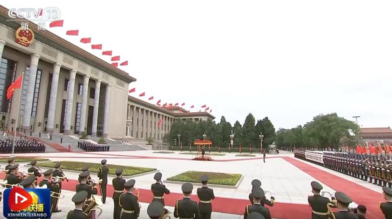 會談前,習近平和夫人彭麗媛在人民大會堂東門外廣場為蘇林和夫人吳芳璃舉行歡迎儀式。