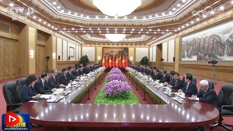 8月19日,中共中央總書記、國家主席習近平在北京人民大會堂同來華進行國事訪問的越共中央總書記、國家主席蘇林舉行會談。