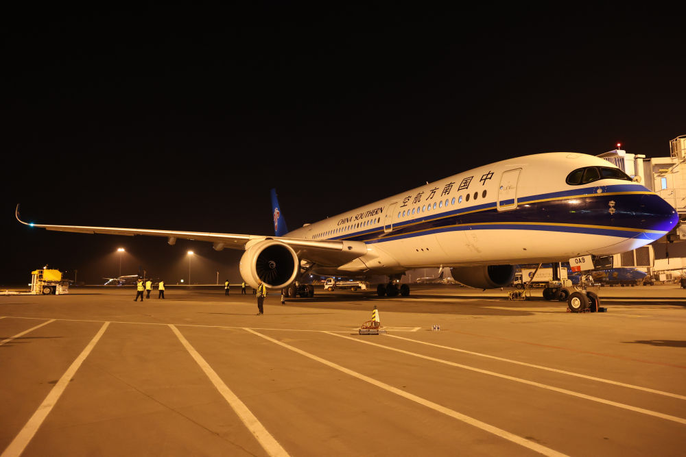 2024年4月24日晚,南航沈陽-法蘭克福CZ8021首航航班在沈陽桃仙國際機場準備起飛。這是國內航司在東北地區(qū)開通的首條直飛德國定期航線。