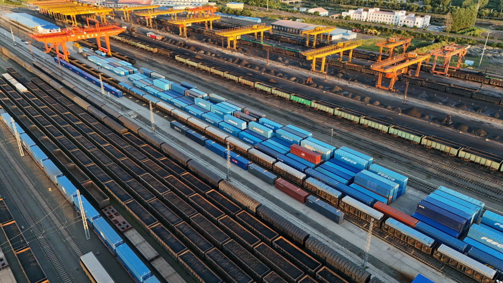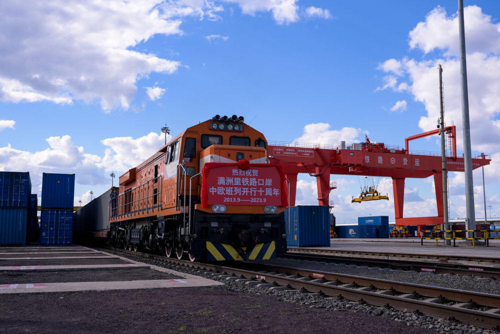 2023年9月20日,一列中歐班列行駛在內蒙古滿洲里站貨運車間集裝箱場。作為我國向北開放的“橋頭堡”、中歐班列“東通道”的重要口岸,滿洲里鐵路口岸不斷加大中歐班列通道能力建設,進一步提升運輸效率和品質。