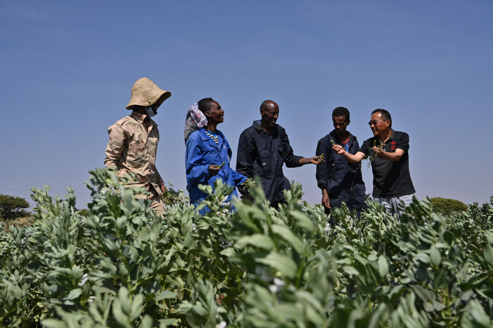 2023年9月27日,在位于厄立特里亞阿斯馬拉的農(nóng)業(yè)技術(shù)援助項(xiàng)目示范地,中國(guó)援厄第三期高級(jí)農(nóng)業(yè)專家組豆類作物專家劉運(yùn)民(右一)與當(dāng)?shù)剞r(nóng)戶交流。為推動(dòng)厄立特里亞農(nóng)業(yè)產(chǎn)業(yè)發(fā)展,中國(guó)農(nóng)業(yè)農(nóng)村部已派出多批專家在厄立特里亞開(kāi)展涉及豆類作物、果樹(shù)園藝、油料等領(lǐng)域的技術(shù)援助工作。